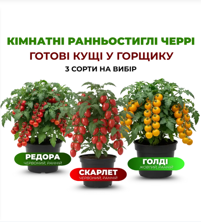 Контроль сортності: Ви отримуєте саме ті 3 сорти черрі, які бачите на фото. Жодних «сюрпризів» чи пересортів — ми власноруч маркуємо кожен горщик.