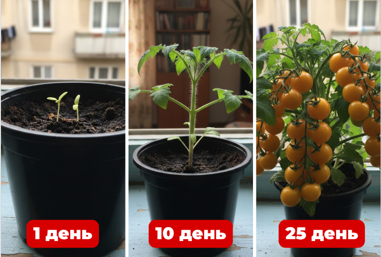 Оптимальний об’єм горщика та дренажна система забезпечують правильне зволоження та живлення без ризику переливу чи гнилі. Такі умови дозволяють F1 сортам формувати компактний, міцний кущ і давати ранні хвилі плодоношення — перші черрі можна побачити вже з 25-го дня.